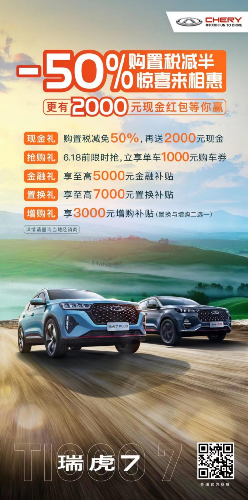 标题:约惠一夏不止,618 瑞虎7全系促销优惠2000,享购置税减半
